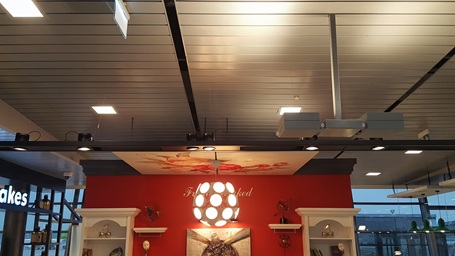 Die Deckenpaneele sind leicht zu montieren und lassen sich komplett und problemlos wieder herausnehmen, um den Zugang zum Deckenhohlraum zu ermöglichen.
