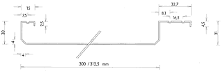 Material: Aluminium, stove-enamelled Rear side coated with protective paint Material thickness: 0.7 mm Colour: Similar to RAL 9010 Base width: 300 mm Lenghts: Avaiable in lenghts of 1000 to 3000 mm |