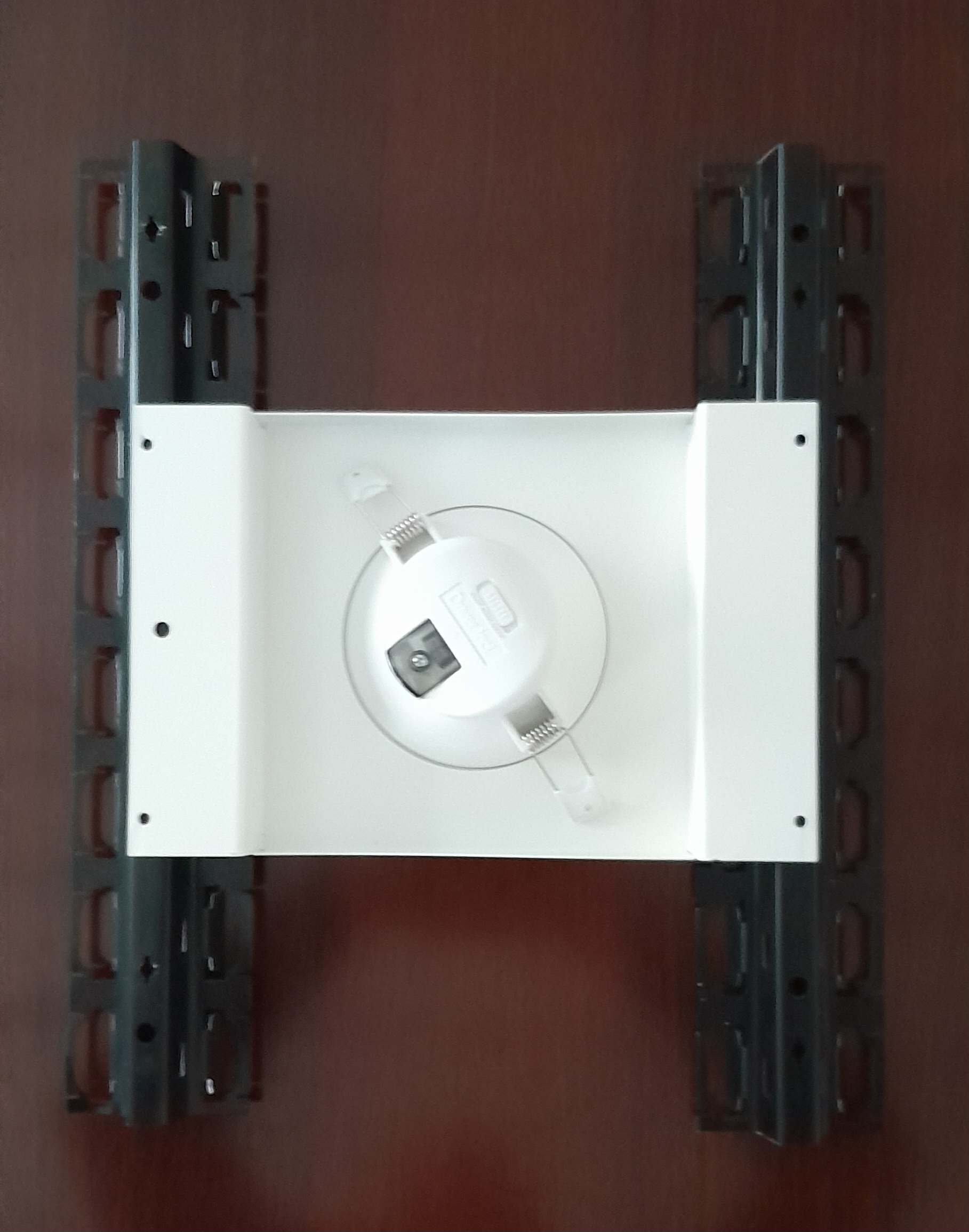 Lampen, Lüftung, Sprinkleranlagen, etc. können mit systemkonformen Zusatzmodulen in die Decke integriert werden. Zusatzmodule und auch Revisionstüren müssen separat abgehangen werden. Zusatzmodule werden im Modul 200, 184x184 mm und Modul 300, 284x284 mm mit separaten Tragschienen geliefert. Loch Maße werden vom Kunden vorgegeben. Revisionstüren können mit Nonius-Abhängern oder Gewindestangen auf jeder Ecke montiert werden.Planheit im Randbereich